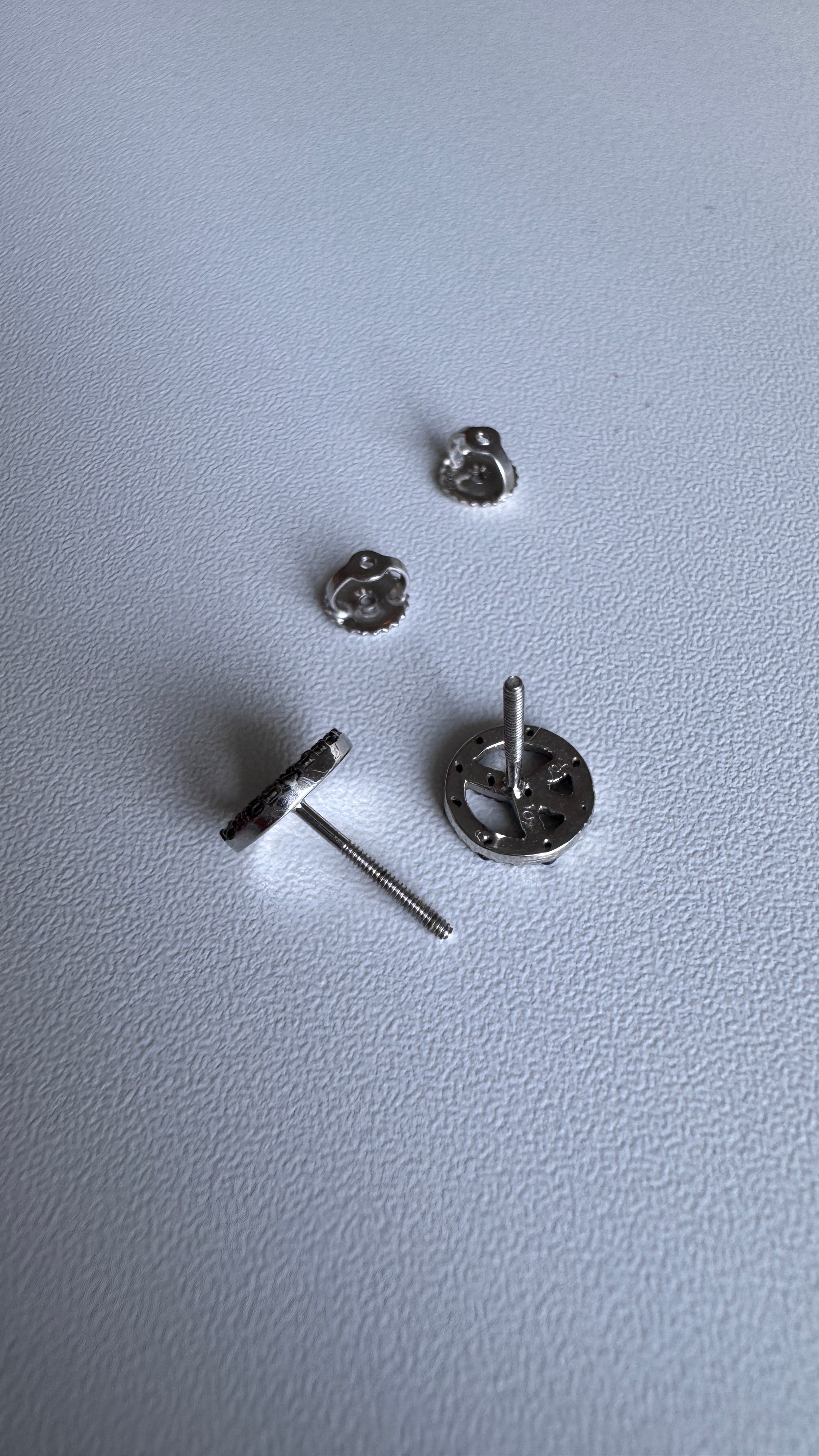10K Solid White Gold 0.15ctw Natural Black Diamond Peace Sign Stud Earrings